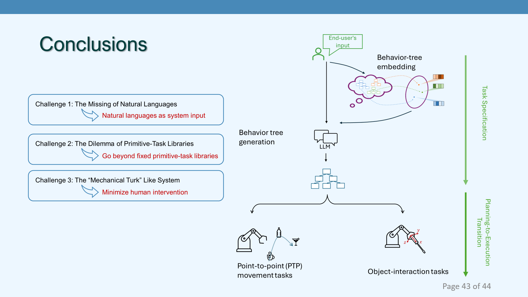 Task-Oriented Programming: Program manipulators in terms of high-level tasks, instead of in terms of explicit motions.